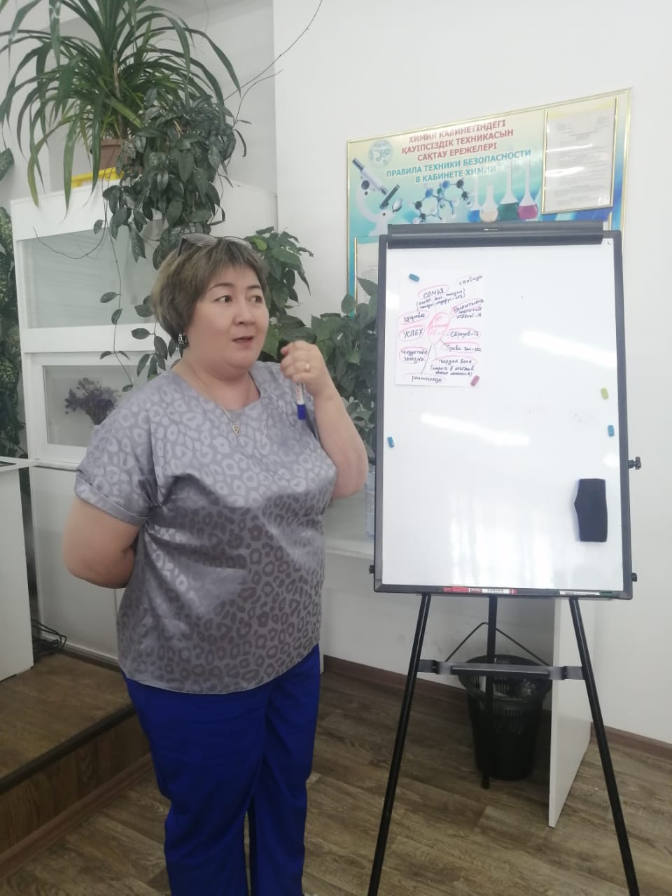 Топтық жұмыс барысында қатысушылар жаңа жағдайдағы білім беру құндылықтарын, құзыреттіліктер мен білім беру нәтижелерін бағалаудың жаңа тәсілдерін талдады. Педагогтер жұмысқа белсенді араласып, әріптестерімен пікірталас жүргізіп, таңдаған ұстанымды дәлелдеді. Практикалық жұмыс жобаларды қорғаумен және түлектің жалпы моделін құрумен аяқталды. Өзекті тақырып аудан мектептерінің әдістемелік және педагогикалық кеңестерінде жалғасын табатын болады.