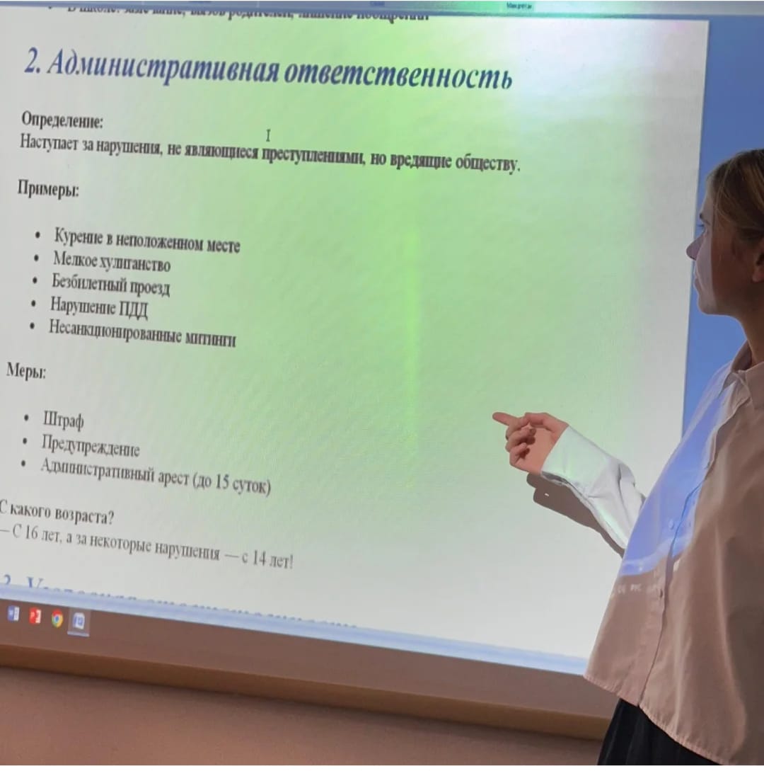 Сабақ барысында 1-11 сынып оқушылары өздерінің құқықтары мен міндеттерімен танысады, кәмелетке толмағандардың жауапкершілігі, құқықтық тәртіп, қауіпсіз мінез-құлық және құқық бұзушылықтың алдын алу мәселелерін талқылайды. Мұндай сабақтар оқушыларға өз іс-әрекеттеріне саналы түрде қарауға көмектеседі және азаматтық жауапкершілікке тәрбиелейді.