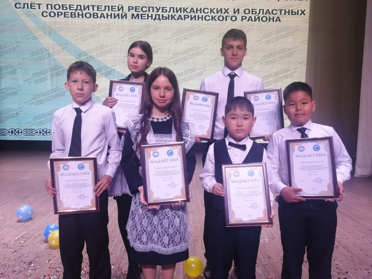 17 мамырда «Юбилейный» МҮ Меңдіқара ауданының республикалық және облыстық жарыстары жеңімпаздарының кезекті слеті өтті. Біздің мектептен келесі балалар қатысты: Есім Тамерлан, Дюняев Дамир, Килипута Артем, Ахметов Әмір, Кузьминчук Кристина, Каныгина Антонина, және келесі құрамдағы "Азимут" командасы: Ахметов Әмір, Богданов Михаил, Яшин Данил, Кушнаренко Александра, Арбузова Виктория, Зубарев Николай, Шурыга Андрей! Бұл балалар 2023-2024 оқу жылында Республикалық және облыстық марапаттар иегерлері атанды! Жүлдегерлерімізді құттықтаймыз және оларға жаңа жеңістер мен жетістіктер тілейміз!