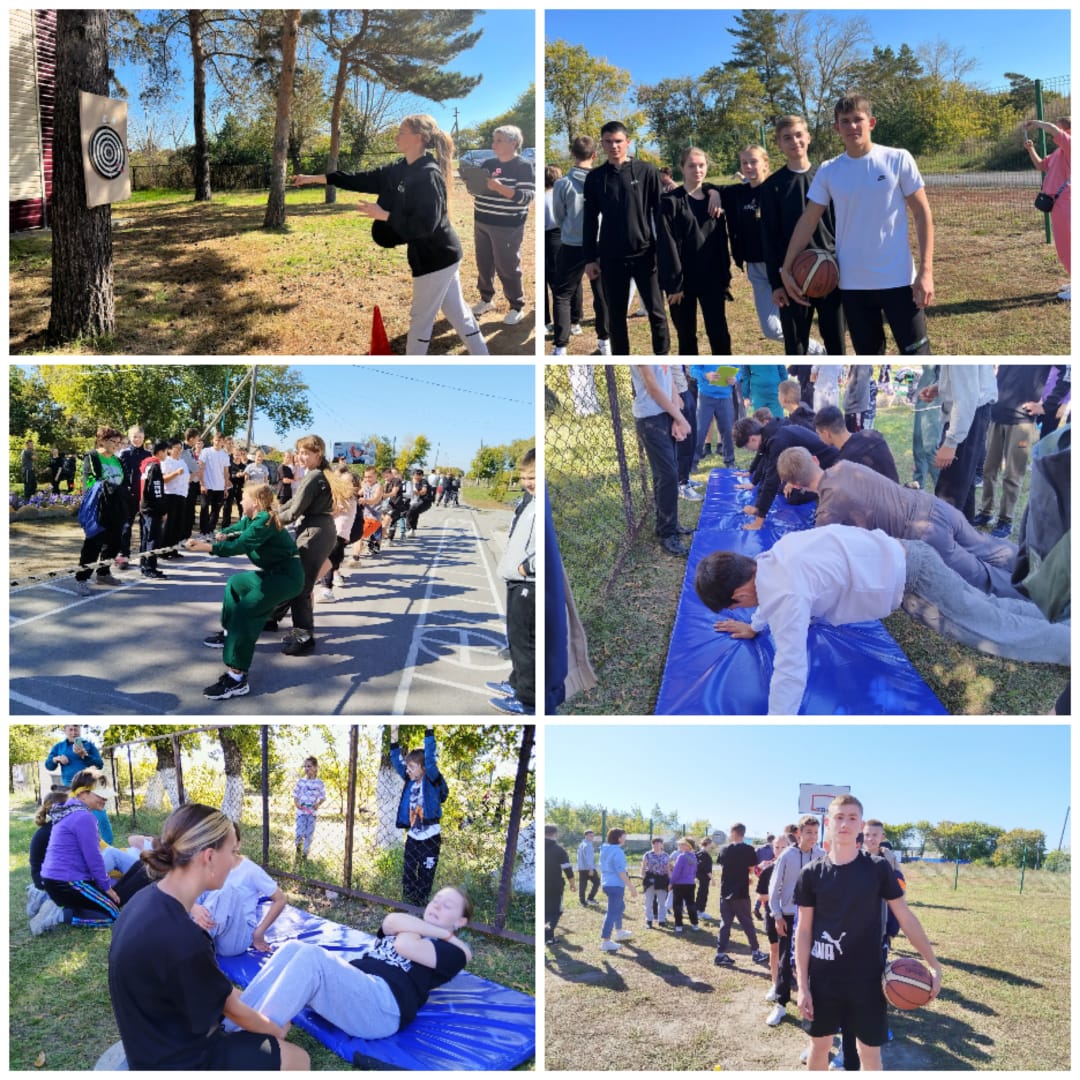 Открытие праздника началось с общешкольной линейки и веселой зарядки. Все классы получили маршрутные листы и отправились по станциям: «Перетягивание каната», «Баскетбольное кольцо», «Силовые упражнения», «Эстафета», «Выбивало», «Дротики». Всем представилась возможность попробовать свои силы, проявить умения, собранность, волю.